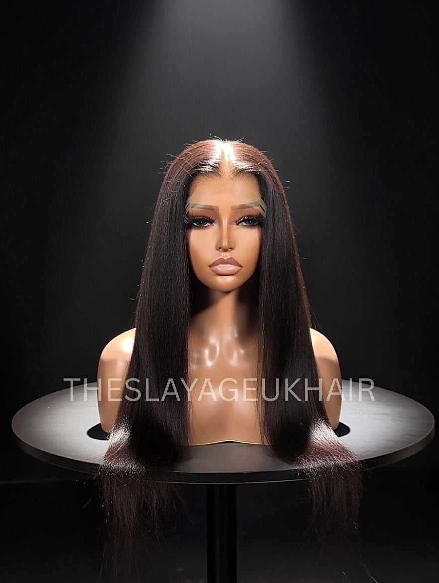 Our Fiona unit is a thin HD yaki straight wig and has been designed to stand out and offer flexibility in being 100% glueless if wanted. Step out of your comfort zone, and try something different. A texture inbetween silk straight and kinky straight, offering you that light added volume to your wig unit.